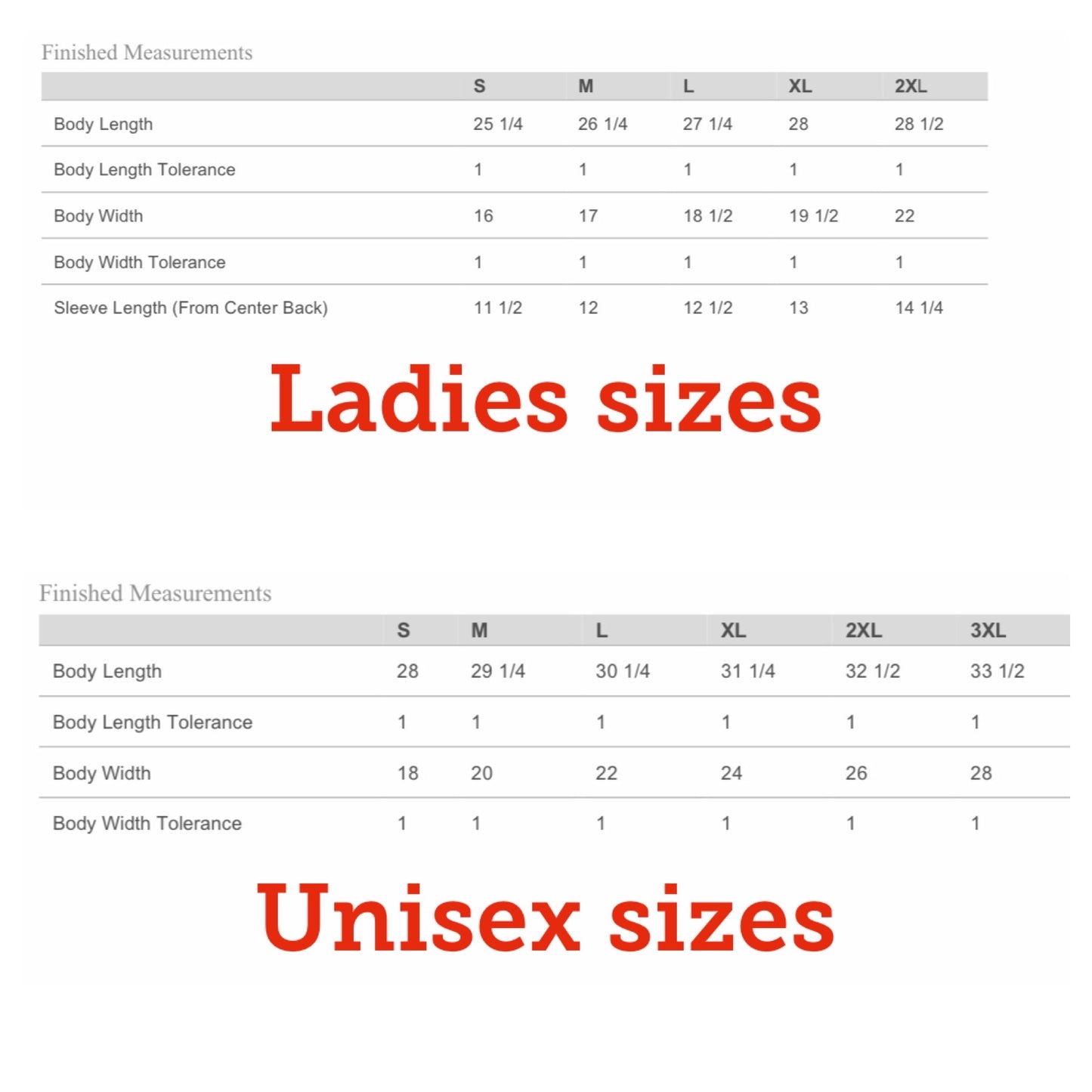 ** please note that ladies sizes are smaller fits. Measurements chart is in the picture