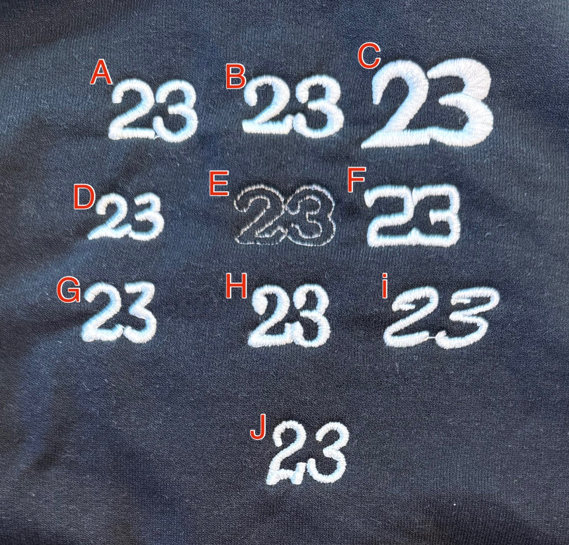 Player number embroidered